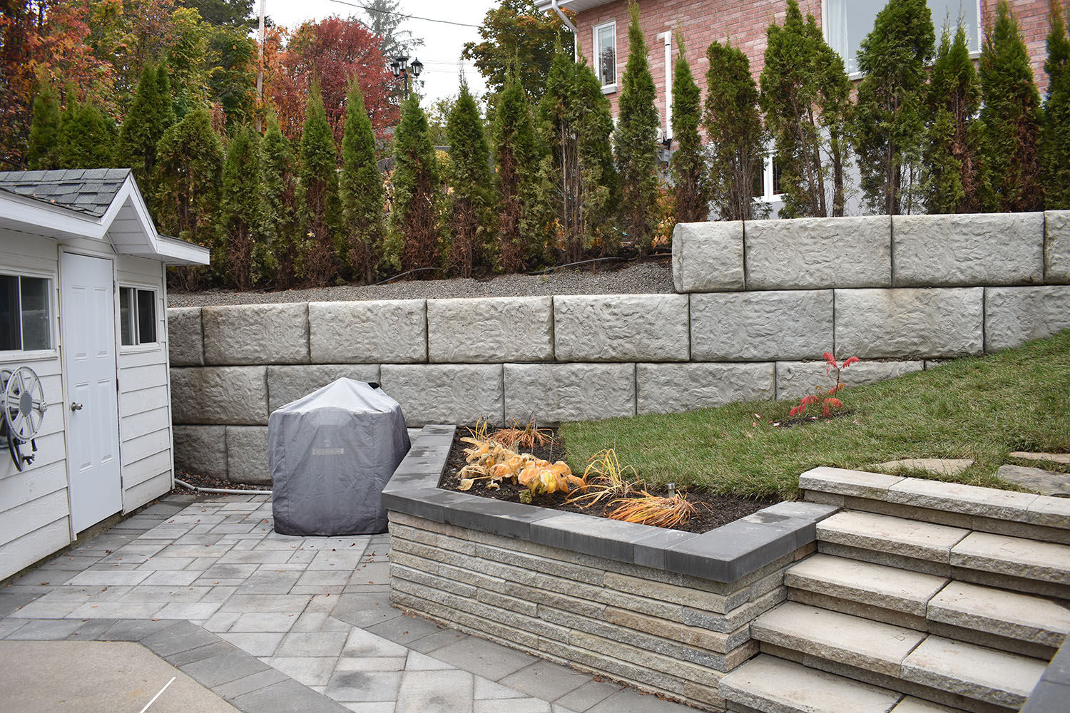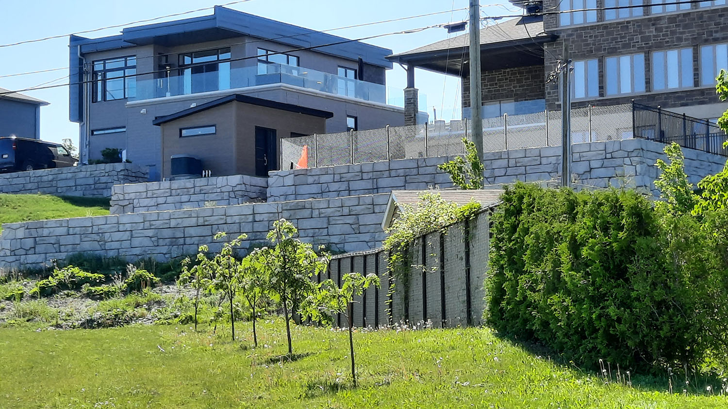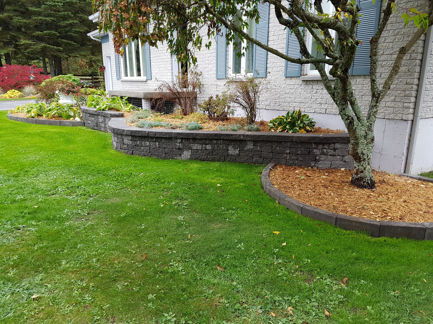 Les murs de soutènement servent à agrandir l’espace utile et permettent d’assurer la sécurité tout en donnant du panache à une propriété. Chez Paysagistes BSL, ils constituent l’une de nos spécialités. La pose des matériaux requiert une machinerie spécialisée ainsi qu’une expertise professionnelle. Donc, lorsque viendra le temps d’ériger ce type de mur, confiez-nous votre projet. Vous vous éviterez ainsi bien des déceptions futures.