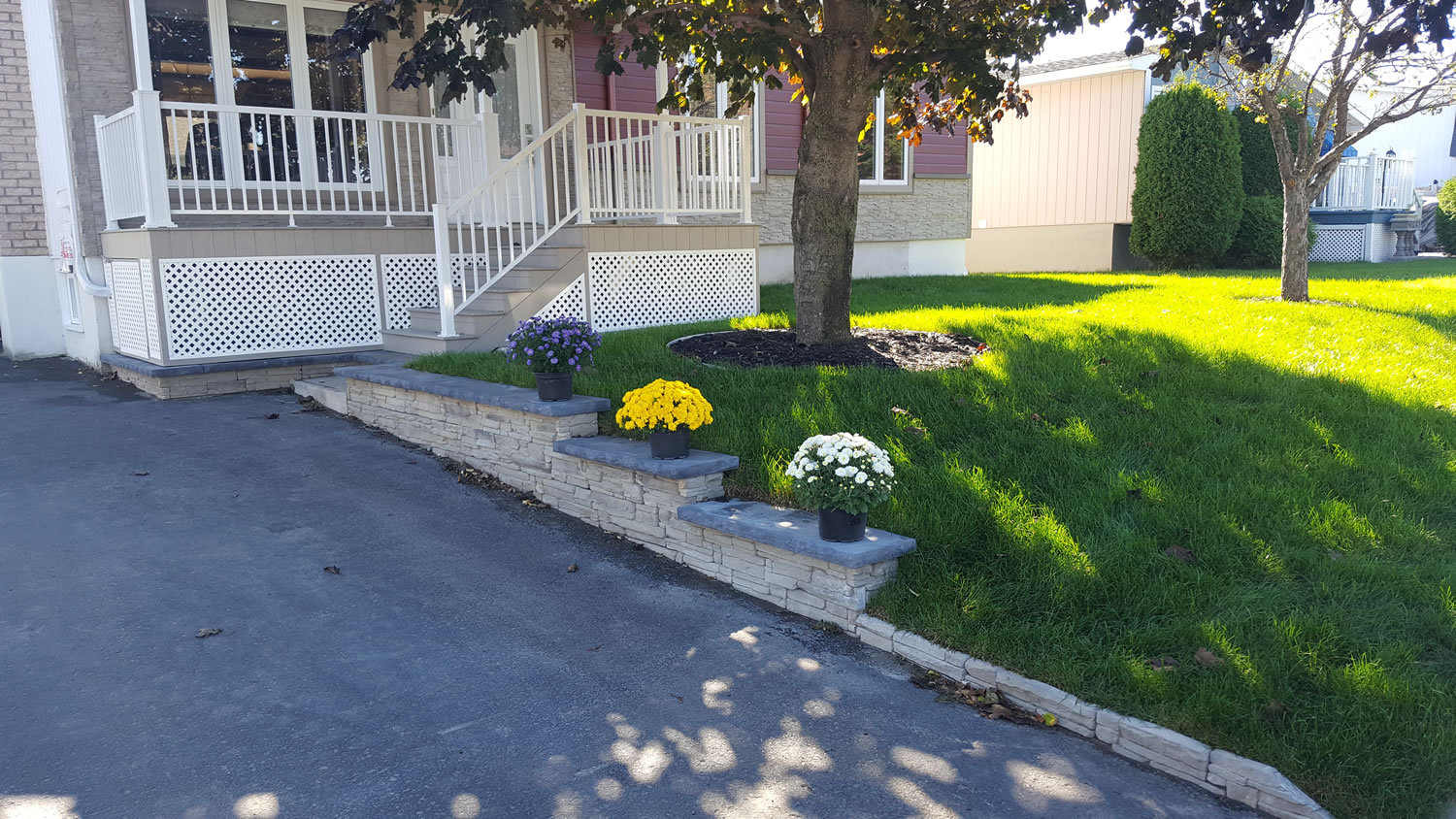 Un muret décoratif en blocs ajoutera de la valeur à votre propriété. Lorsque vient le temps de vous conseiller, nous prenons en considération tous les éléments de votre environnement. L’architecture de la maison est le meilleur point de repère aux designs des aménagements. Le type de terrain et vos goûts personnels influenceront également le choix des matériaux et leur installation.
